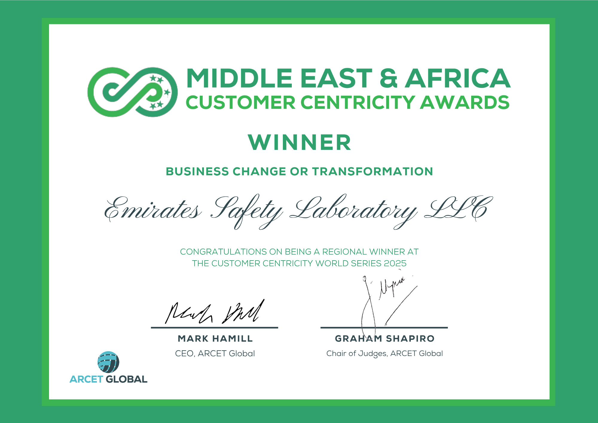 • Middle East & Africa Customer Centricity Awards 2025 – Winner-Business Change or Transformation